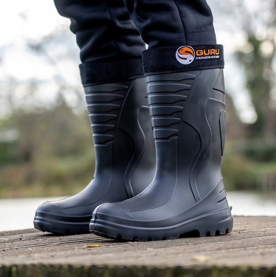 Winter footwear arrives in the form of the new Guru Wellies. Made from lightweight EVA, they reduce fatigue during long walks to the peg. Removable insulated liners help keep feet warm in cold conditions and the deep tread soles provide grip on wet or muddy banks.