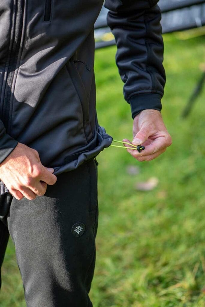 Bungee adjusters at hem enables a secure fit to keep the heat in and the wind out