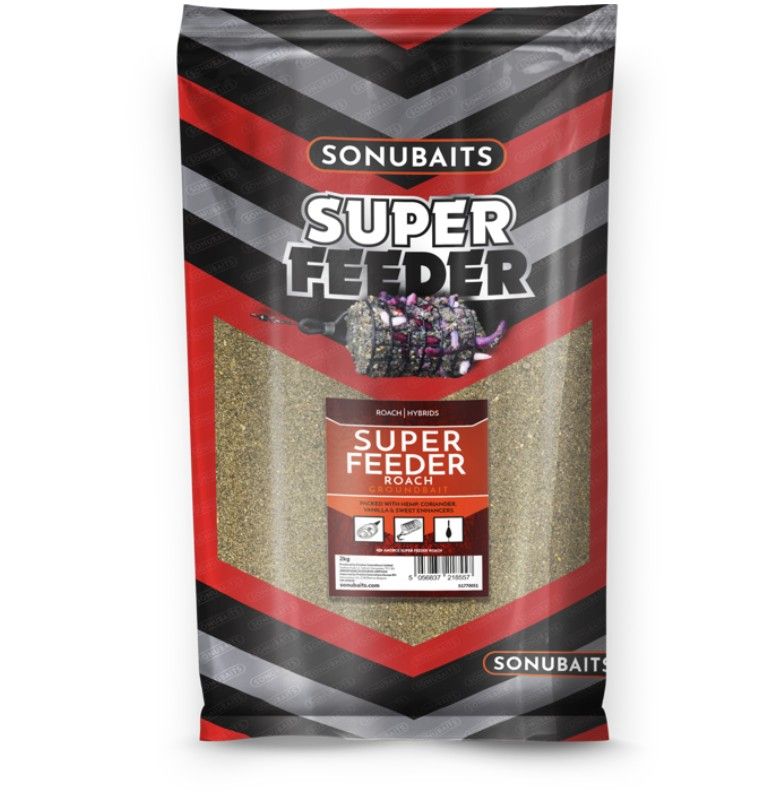 Super Feeder Roach is a non-fishmeal mix that has been developed with feeder fishing in mind alongside World Champion Sonubaits consultants Felix Scheuermann, Lee Kerry and Will Freeman. Although labelled as a feeder mix within our 2kg ‘Super Feeder’ range, it is also perfect for use in conjunction with float tactics on natural venues. A soft mix with a cereal base, crushed hempseed and coriander influence and sweet vanilla scent. Importantly, Super Feeder Roach isn’t too sticky meaning it can be fished effectively through a cage or plastic open-end feeder as well as being perfect when over-wetted and smeared over a window style feeder.
