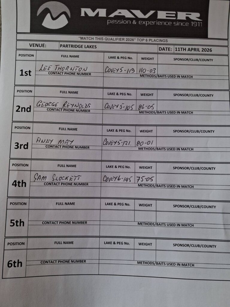 Saturday, 11th April 2026, saw the fifth qualifier of the Maver Match This campaign head to Partridge Lakes Fishery, where Lee Thornton secured his place in the £50,000 final with a commanding display.