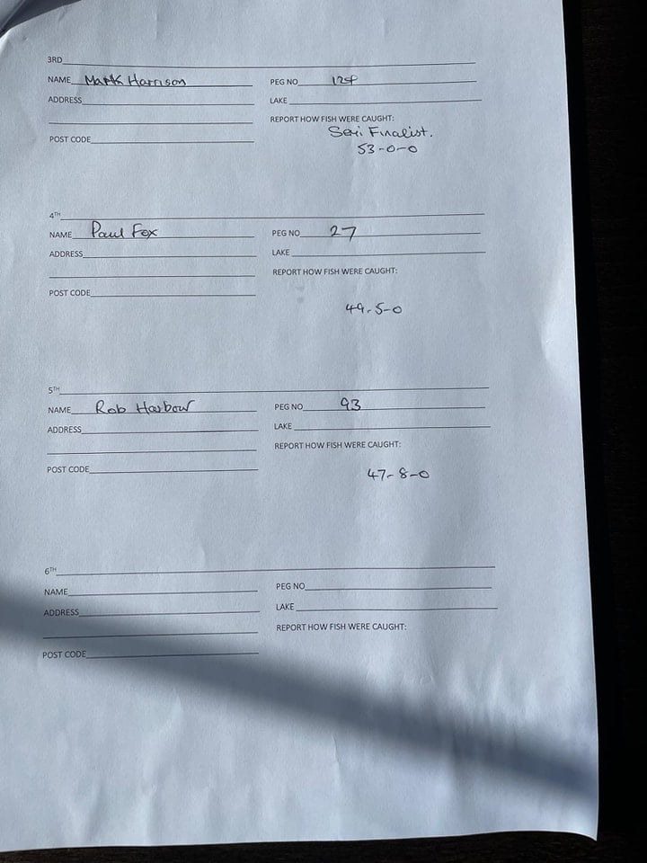 Canning drew peg 123 and finished the match with 92lb 2oz. According to his interview on the Golden Reel Facebook page, he caught 11 carp in the first couple of hours before the bites dried up. He then had to remain patient until the closing stages of the match to land his next fish. Second place went to Stefan Pal from peg 59 with 60lb 2oz. The remaining semi-final spot went to Mark Harrison with 53 exactly from peg 124.