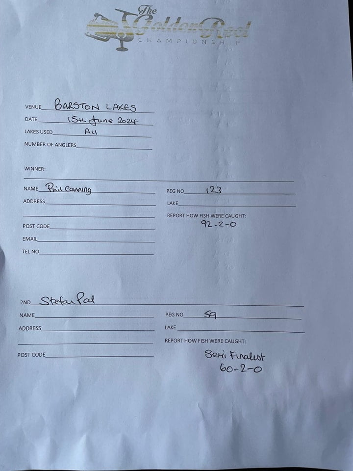 Congratulations to Phil Canning who become the latest angler to qualify for the big-money final at Larford Lakes on 28th September. The full list of Golden Reel 24 finalists is below: